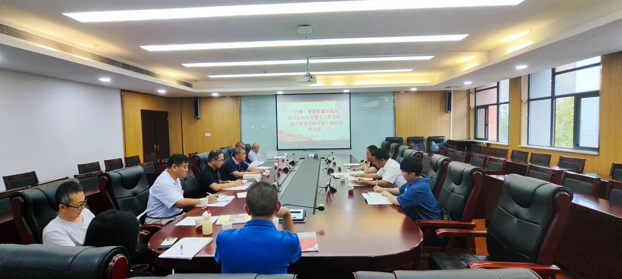 2025年10月17日下午,遵义医科大学机关第十三党支部与遵义师范学院学报编辑部党支部在遵义师范学院行政楼三楼321会议室联合开展“六联”党建联建活动。本次活动以深入学习贯彻党的二十大精神为主线,聚焦党建引领与学术期刊融合发展,双方党员共聚一堂,共谋发展。活动由遵义师范学院学报编辑部主任朱彬主持。