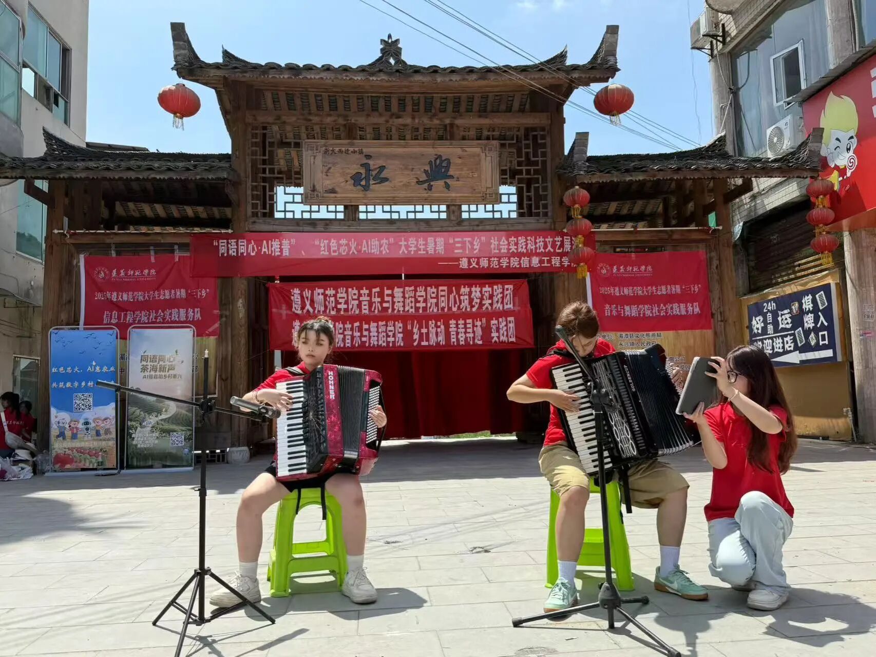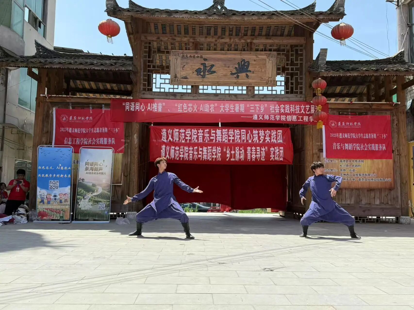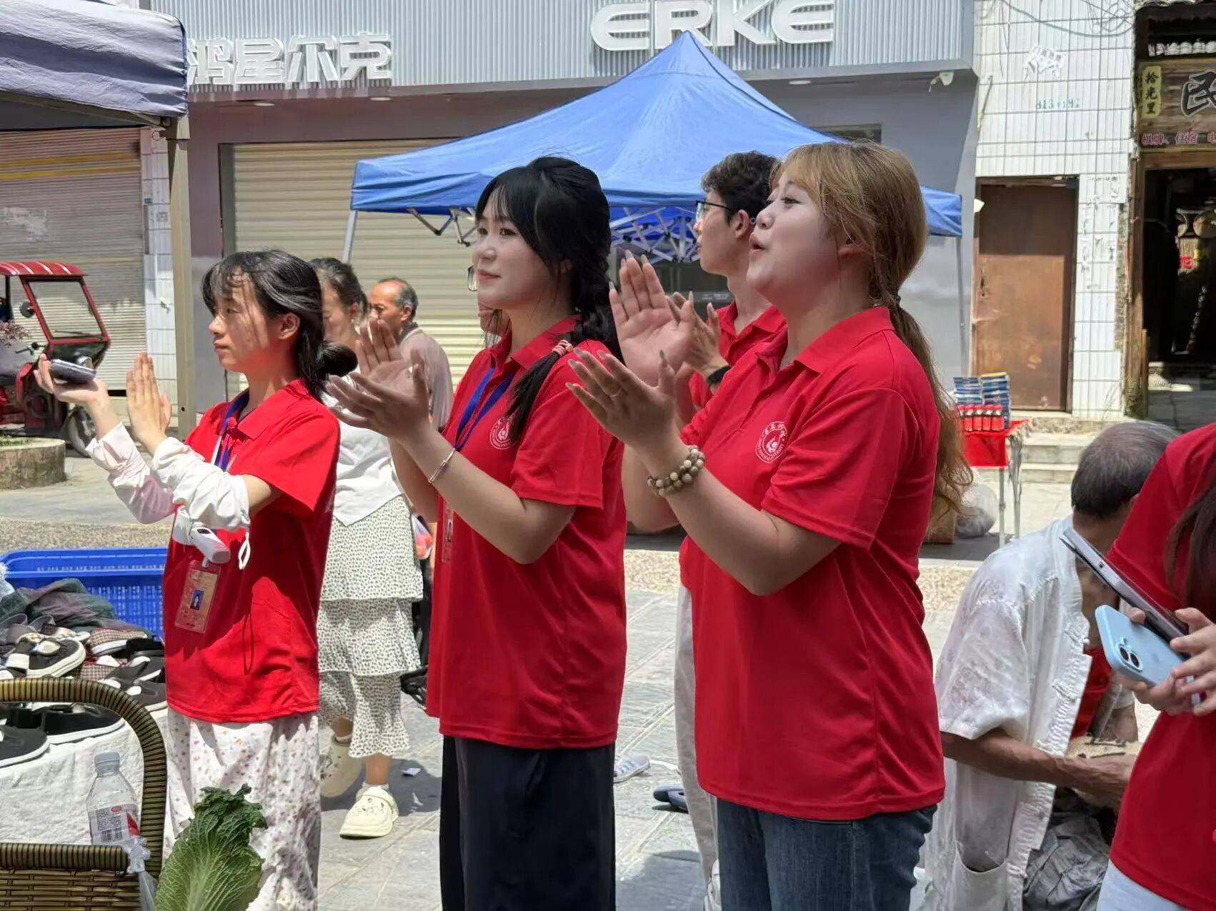 2025年7月16日11时,正逢永兴镇赶集,街上人声鼎沸,我院此次暑期“三下乡”文艺汇演在此拉开帷幕。队员们以大家都青春之火与七月的永兴来了一场美丽的碰撞,点燃了这片承载红军长征记忆与浙大西迁文脉的土地。