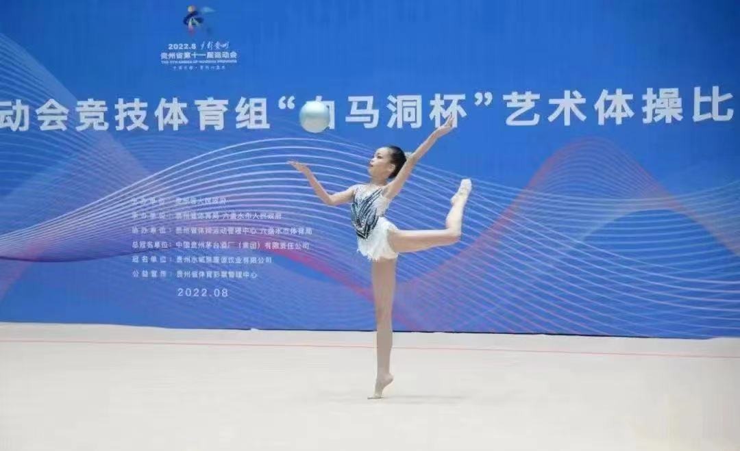 2022年8月14—15日,贵州省第十一届运动会竞技体育组“白马洞杯”艺术体操比赛在六盘水黄土坡体育馆举行,8支代表队的44名运动员同台竞技。遵义师范学院附属实验学校艺术体操队代表遵义市参赛,以57.450分的成绩拿到乙组个人团体铜牌,甲组个人团体第四名,甲组个人全能第六名、第七名,乙组个人全能第七名,五(8)班令狐艺瑶获体育道德风尚奖。