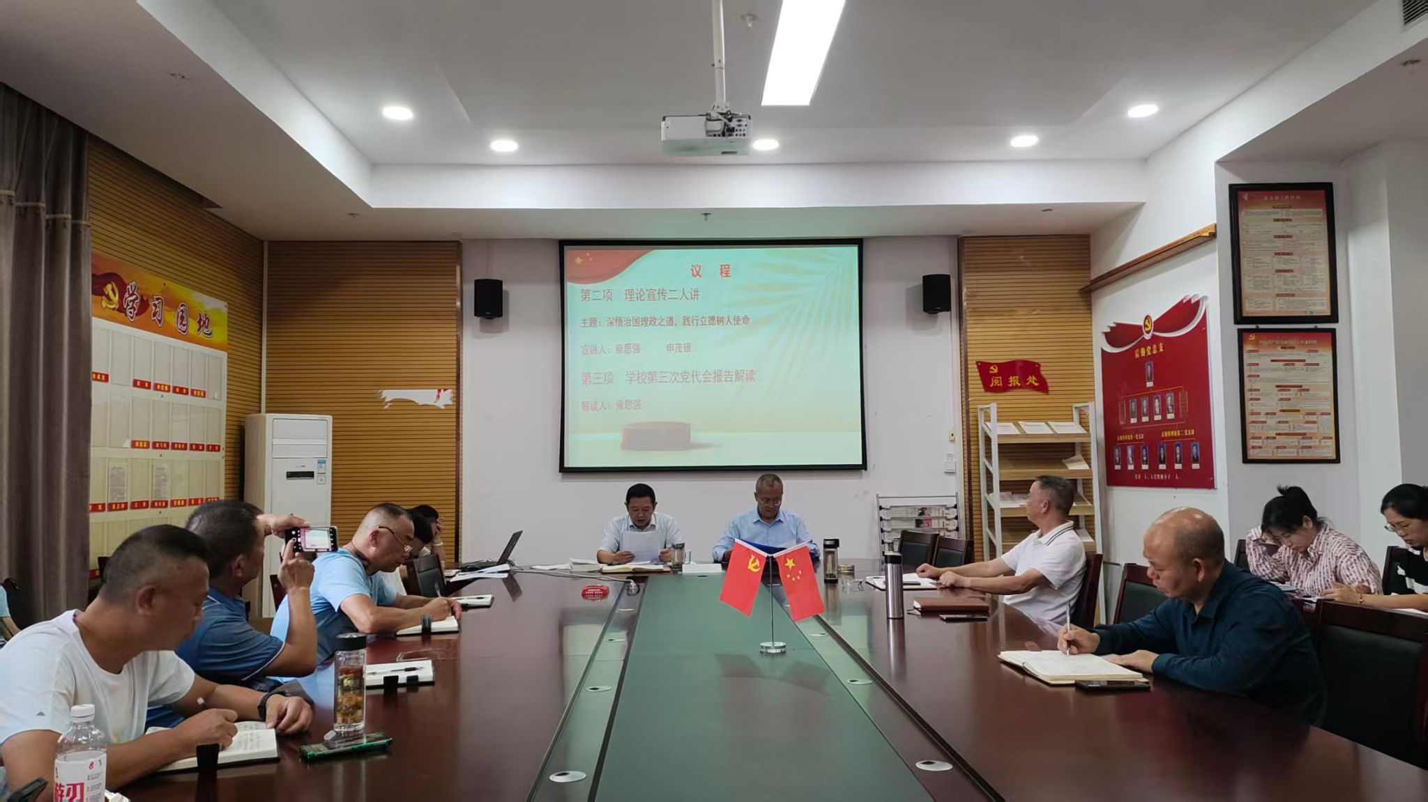 会上,雍思强处长、申茂银副处长联合开展了主题为“深悟治国理政之道,践行立德树人使命”的理论宣传二人讲。在宣讲过程中,雍思强处长就中国共产党遵义师范学院第三次党员代表大会上陈治松书记所作的报告,向全体参会同志作了详细解读,并指出,后勤职工要立足后勤保障服务学校大局,坚持以学生为中心强化育人功能,突出后勤“三服务”理念和“四育人”功能,助力学校特色高质量发展。