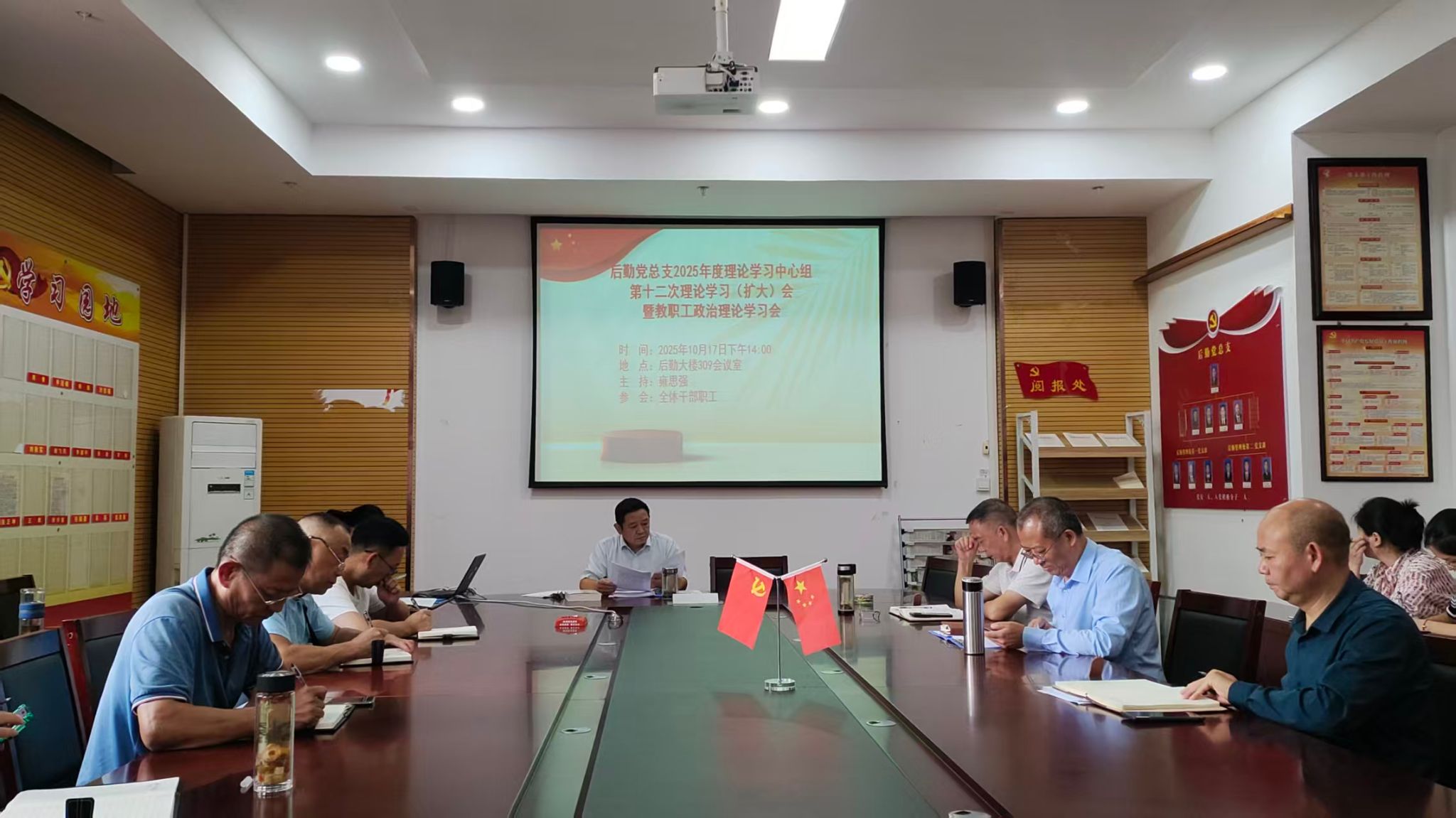 2025年10月17日下午,后勤管理处党总支在后勤大楼309会议室召开2025年理论学习中心组第十二次理论学习(扩大)会暨教职工政治理论学习会,会议由后勤管理处处长雍思强主持,全体教职工参加会议。